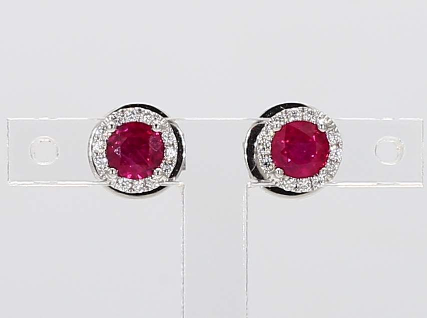 ROUND RUBY & ROUND DIAMOND 14KW EARRING