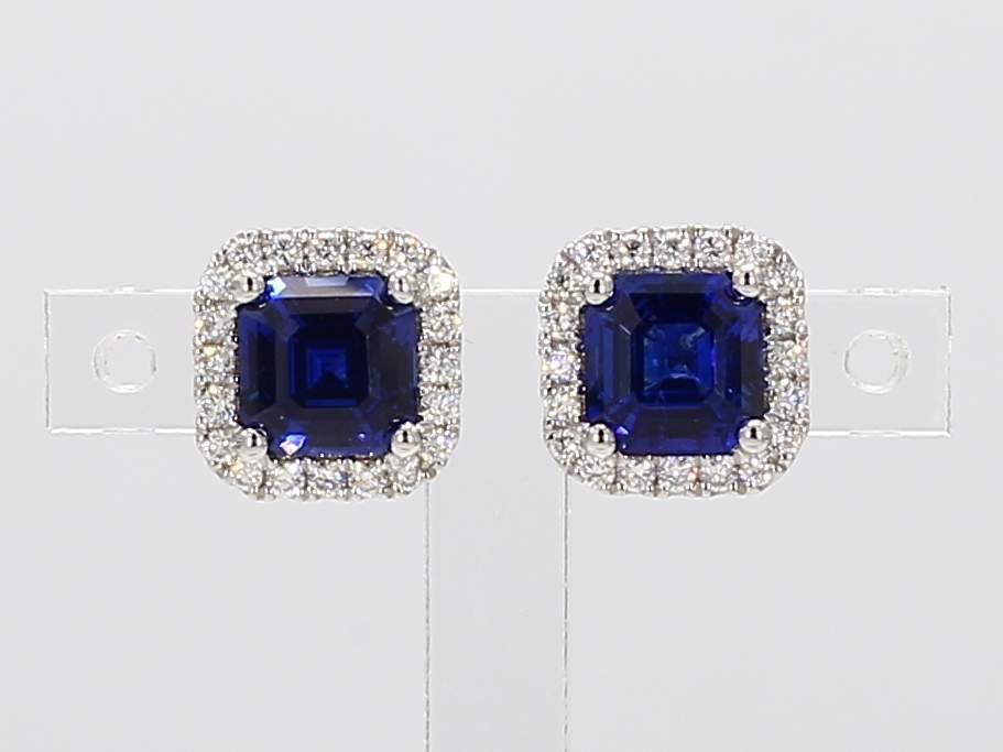 SQUARE SAPPHIRE & ROUND DIAMOND 18KW EARRING