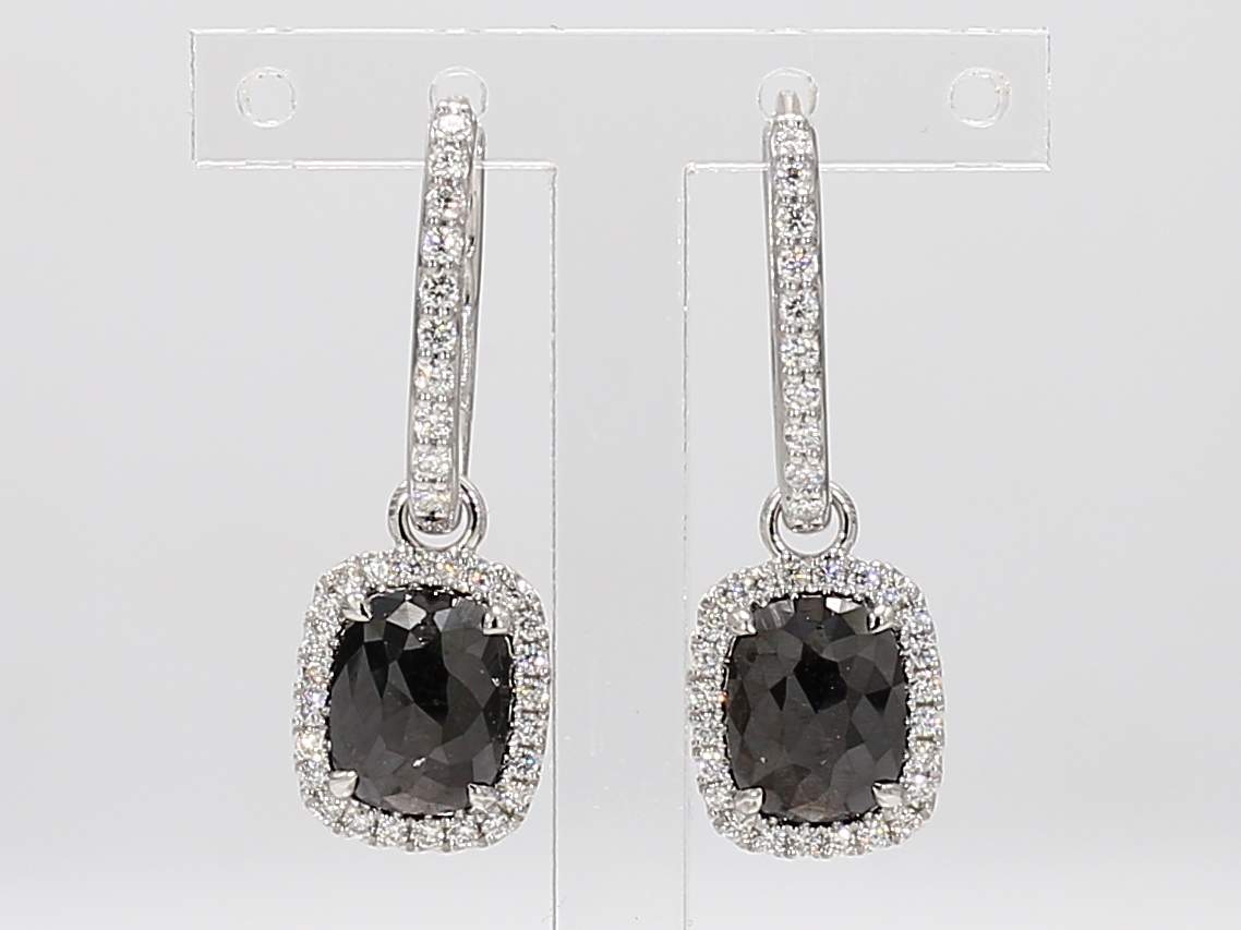 CUSHION BLACK DIAMOND & ROUND DIAMOND 14KW EARRING