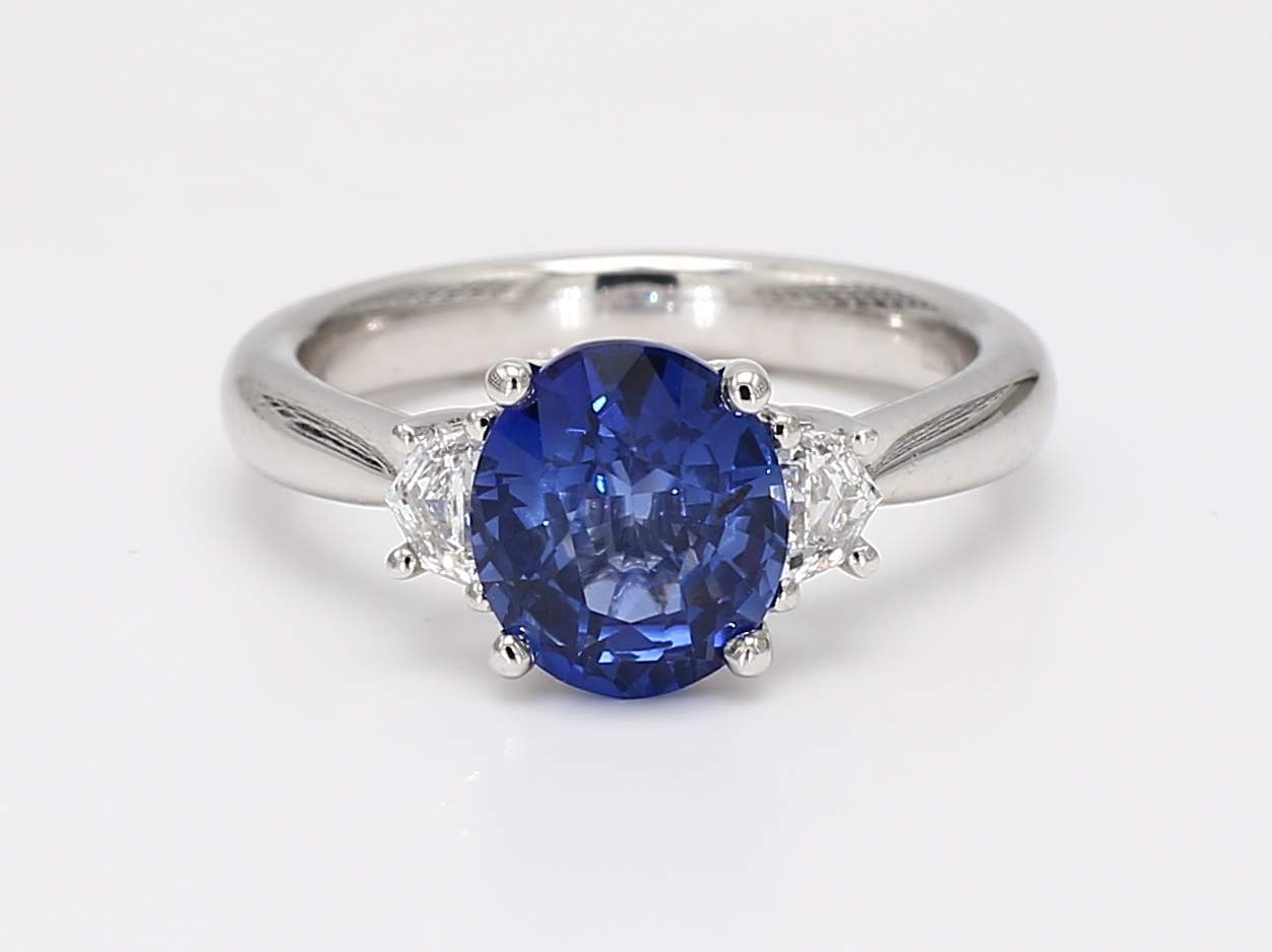 OVAL SAPPHIRE & EPAULETTE DIAMOND PLATINUM RING