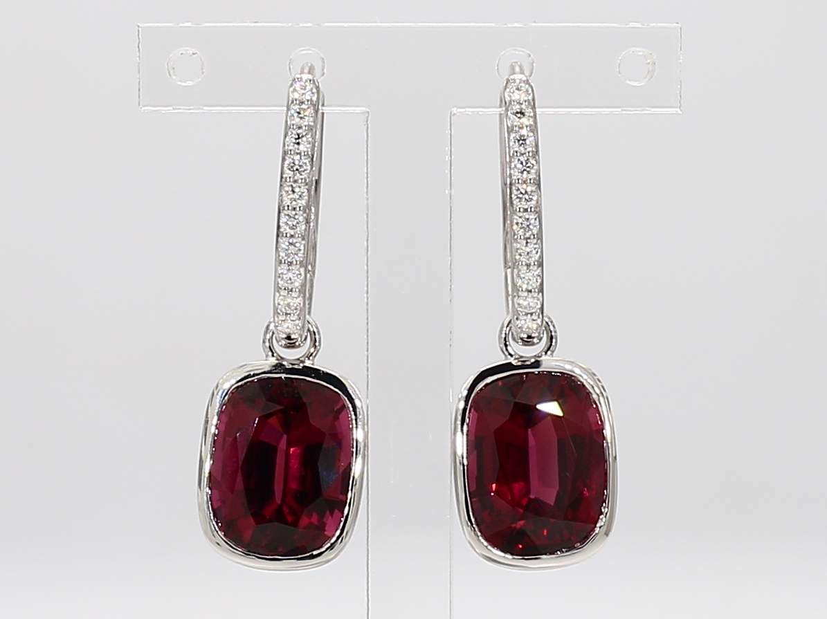 CUSHION RHODOLITE GARNET & ROUND DIAMOND 14KW EARRING