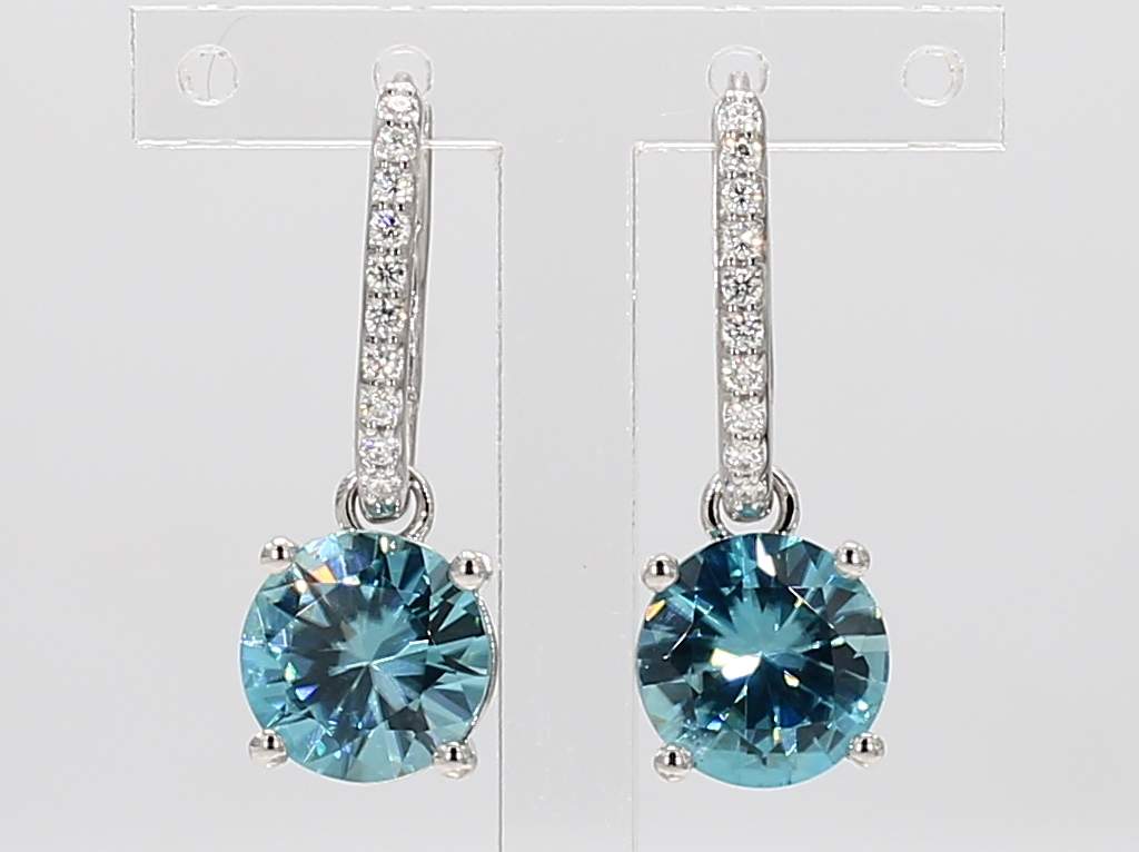 ROUND ZIRCON & ROUND DIAMOND 14KW EARRING