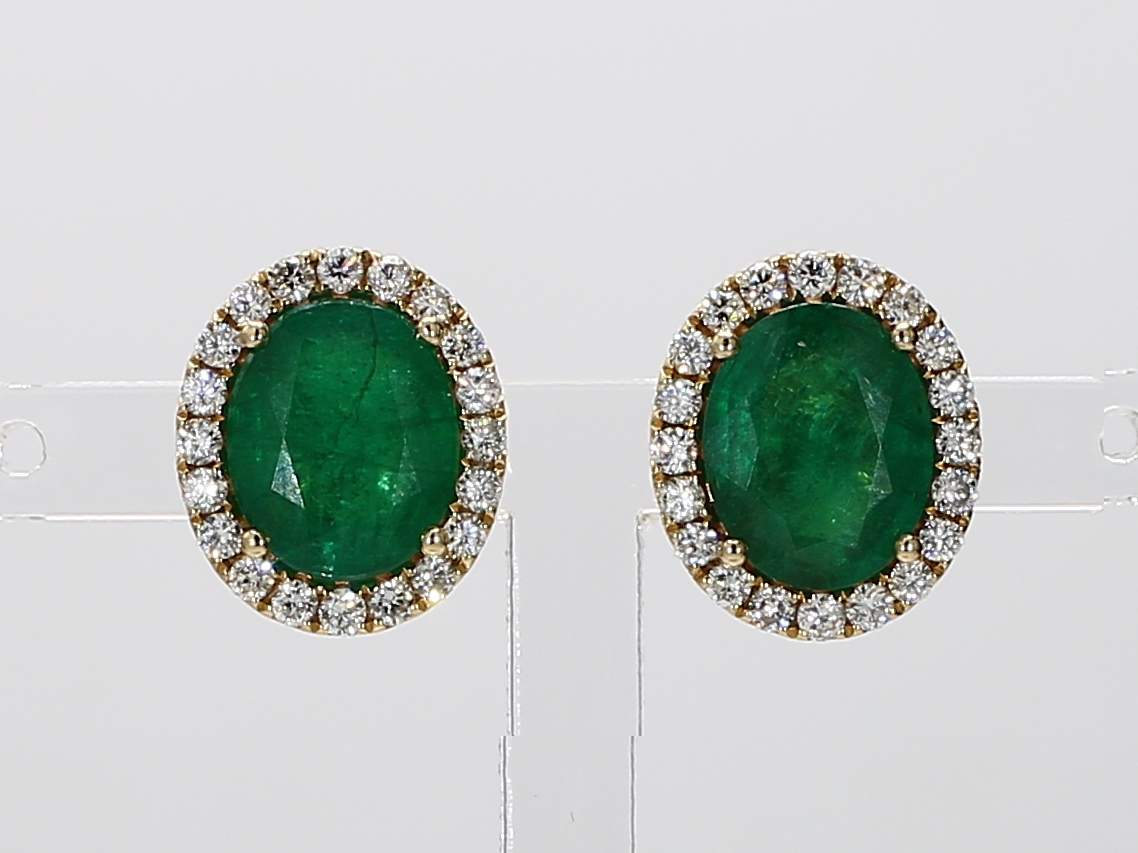 OVAL EMERALD & ROUND DIAMOND 14KY EARRING