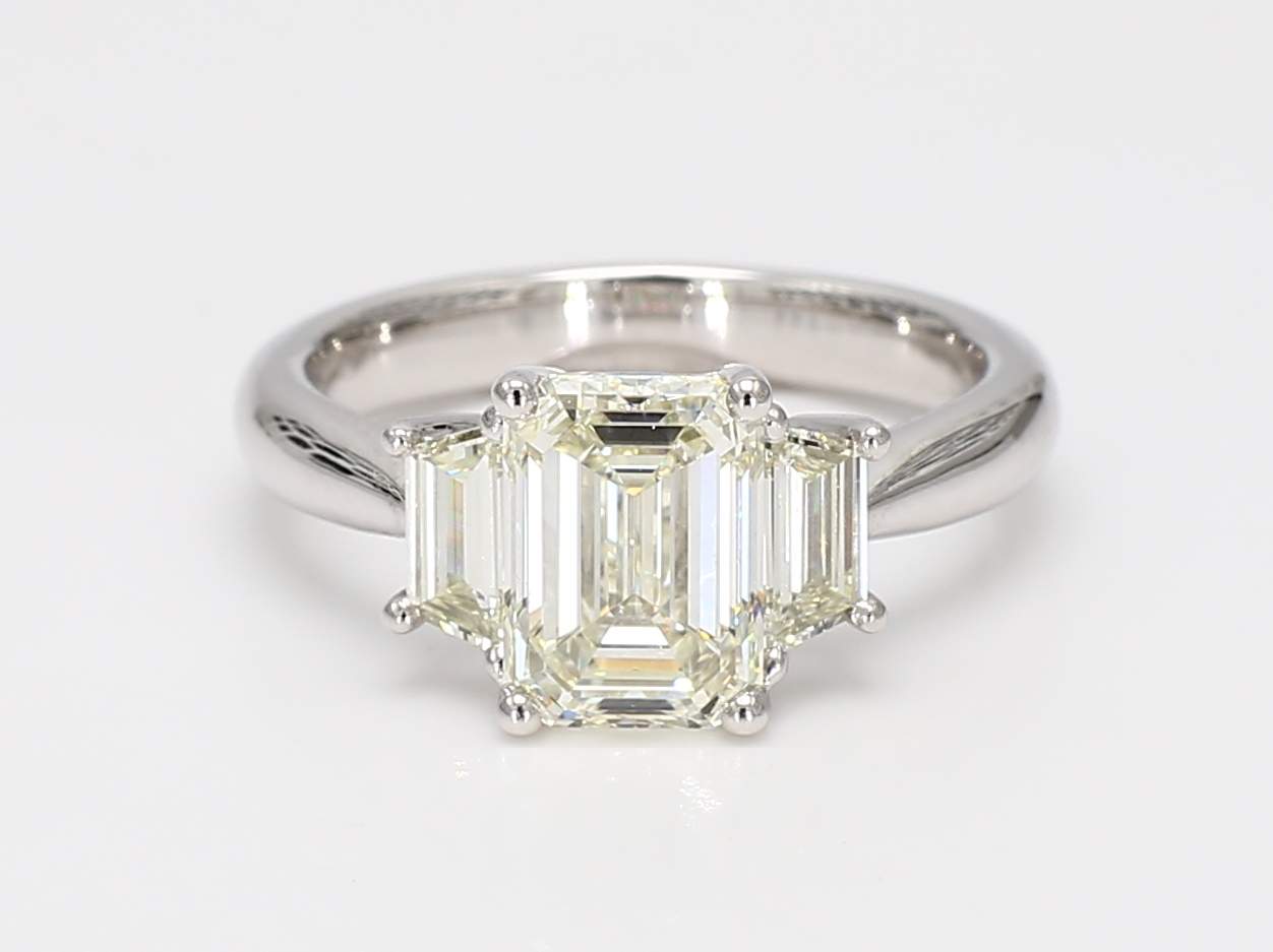 EMERALD CUT DIAMOND L VVS1 GIA 1505383438 & TRAPEZOID DIAMOND PLATINUM RING