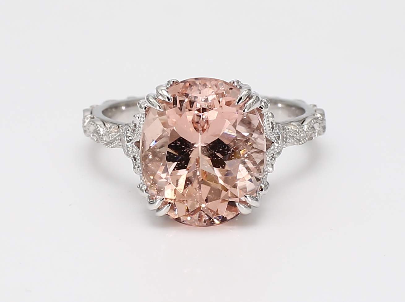 OVAL MORGANITE & ROUND DIAMOND 14KW RING
