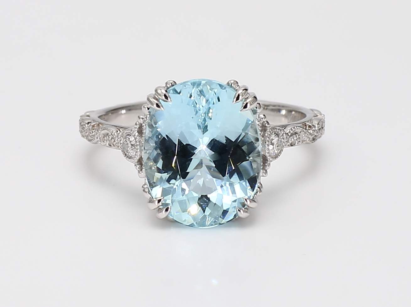 OVAL AQUAMARINE & ROUND DIAMOND 14KW RING