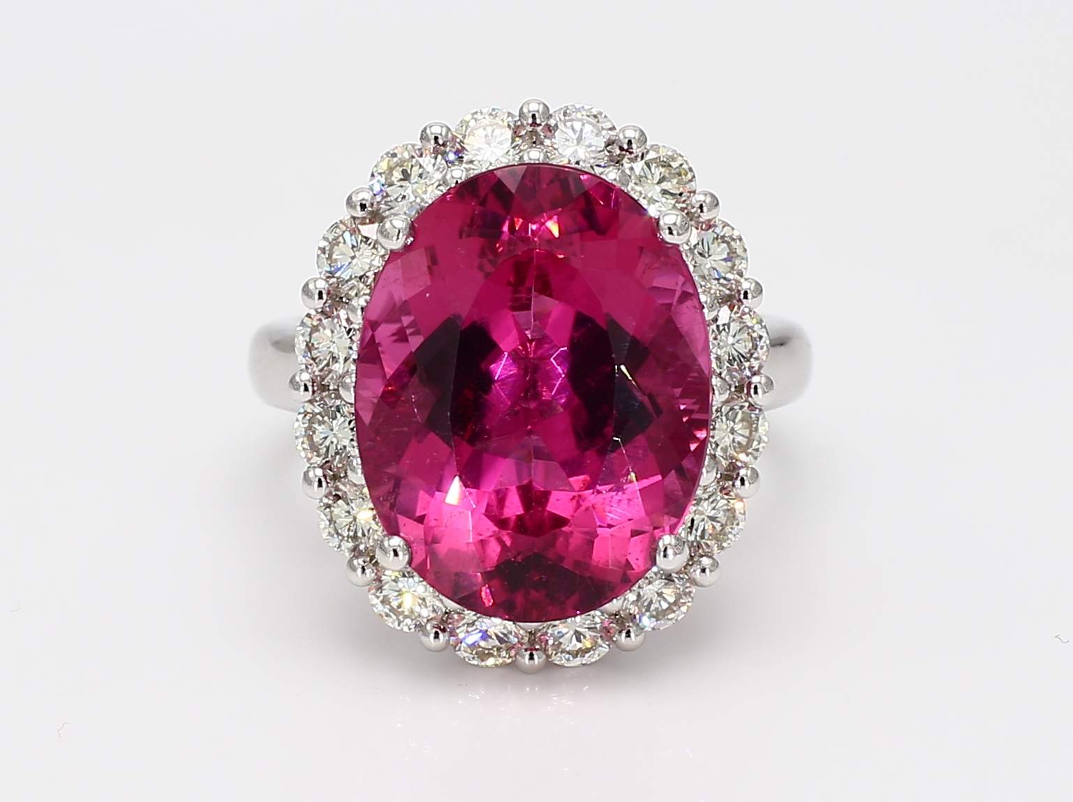 OVAL PINK TOURMALINE & ROUND DIAMOND PLATINUM RING