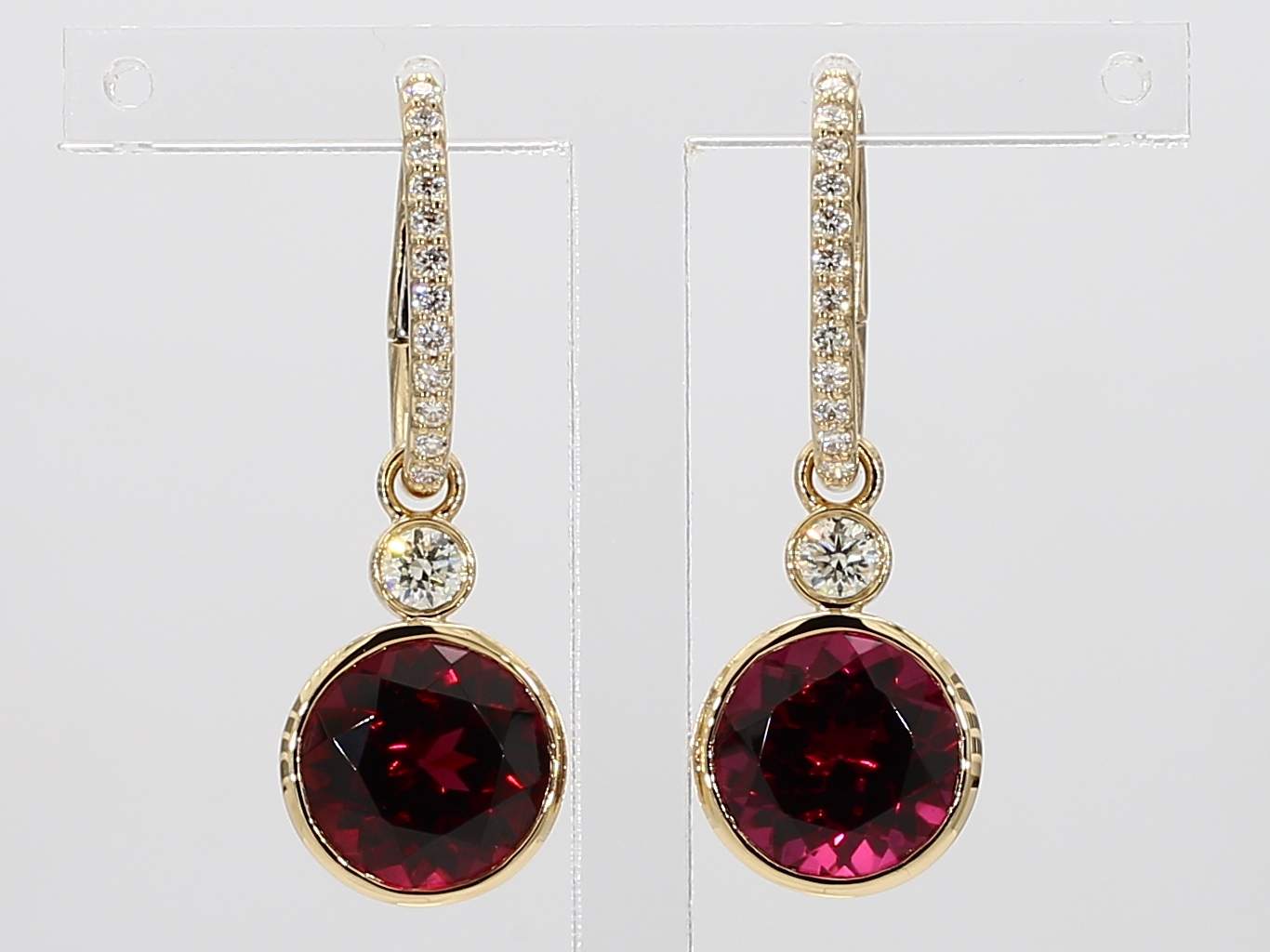 ROUND RHODOLITE GARNET & ROUND DIAMOND 14KY EARRING