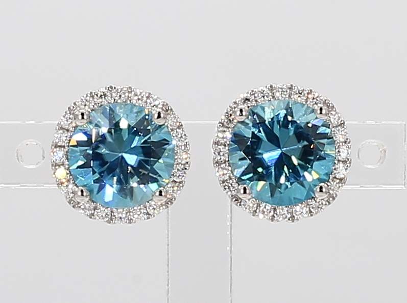 ROUND ZIRCON & ROUND DIAMOND 14KW EARRING