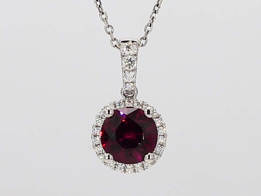 ROUND UMBALITE GARNET & ROUND DIAMOND 14KW PENDANT