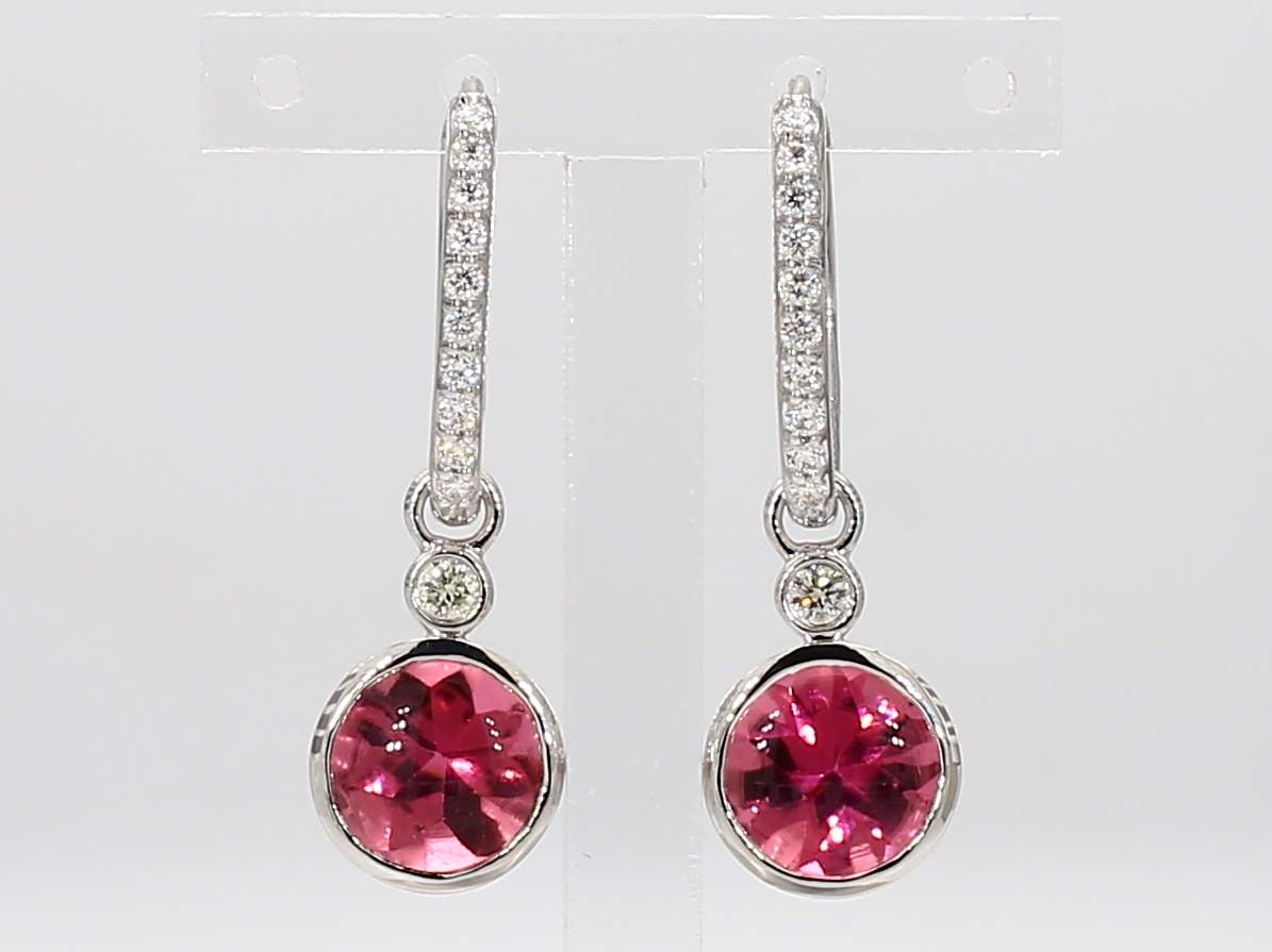 ROUND PINK TOURMALINE & ROUND DIAMOND 14KW EARRING