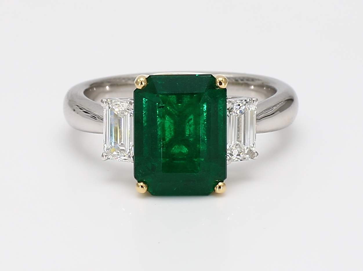 EMERALD CUT EMERALD & EMERALD CUT DIAMOND PLATINUM RING