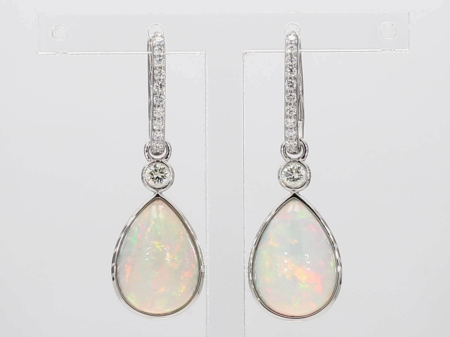 PEAR SHAPE OPAL & ROUND DIAMOND 14KW EARRING