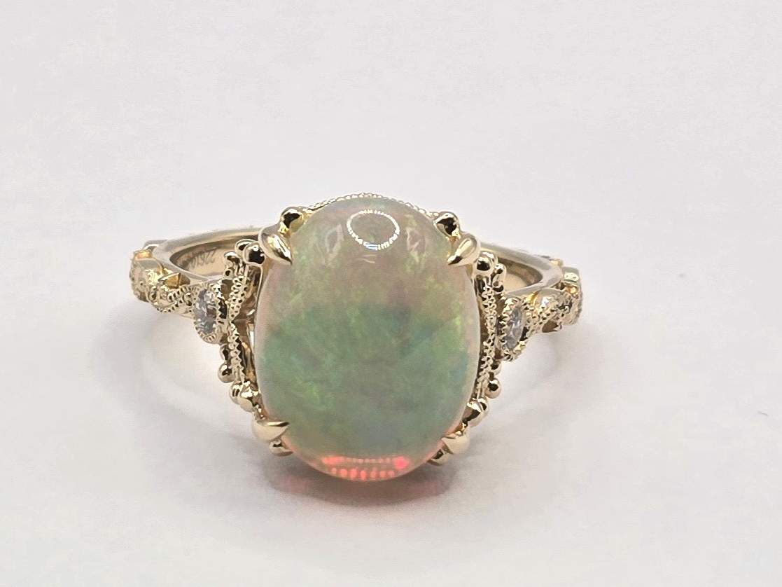 OVAL OPAL & ROUND DIAMOND 14KY RING