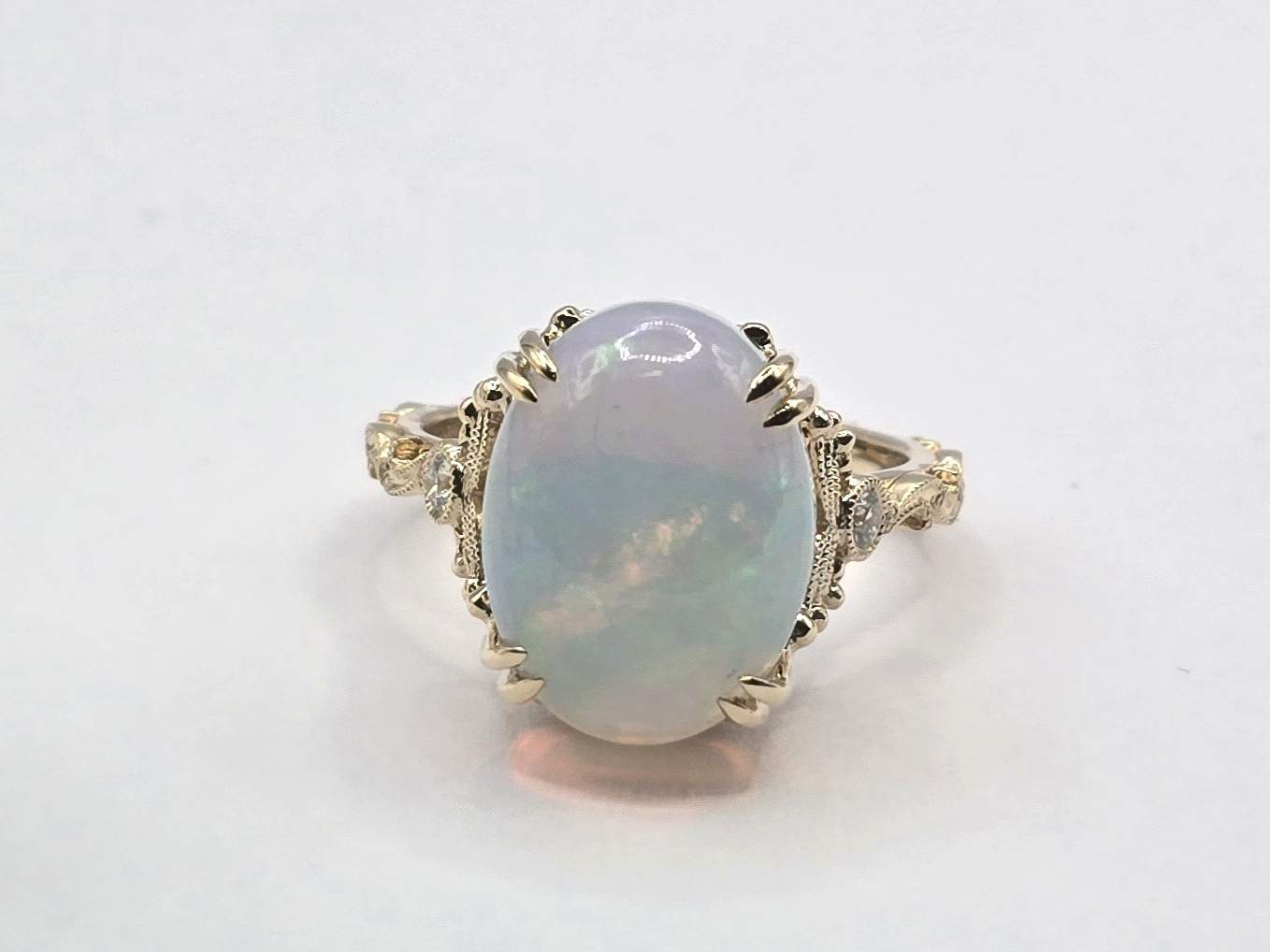 OVAL OPAL & ROUND DIAMOND 14KY RING