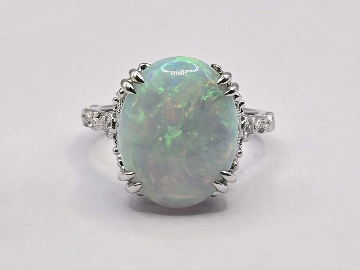 OVAL OPAL & ROUND DIAMOND 14KW RING