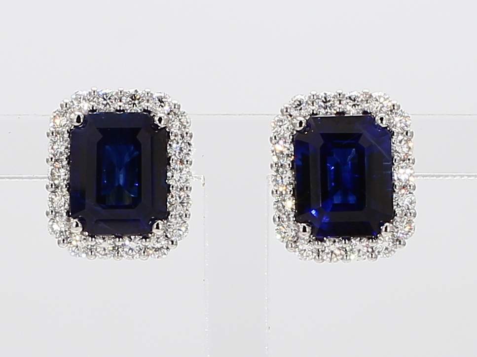 EMERALD CUT CEYLON SAPPHIRE DEEP BLUE GRS2023-027258 & GRS2023-027259 & ROUND DIAMOND 18KW RING