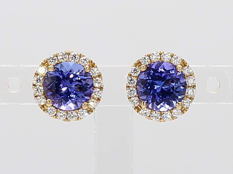 ROUND TANZANITE & ROUND DIAMOND 14KY EARRING