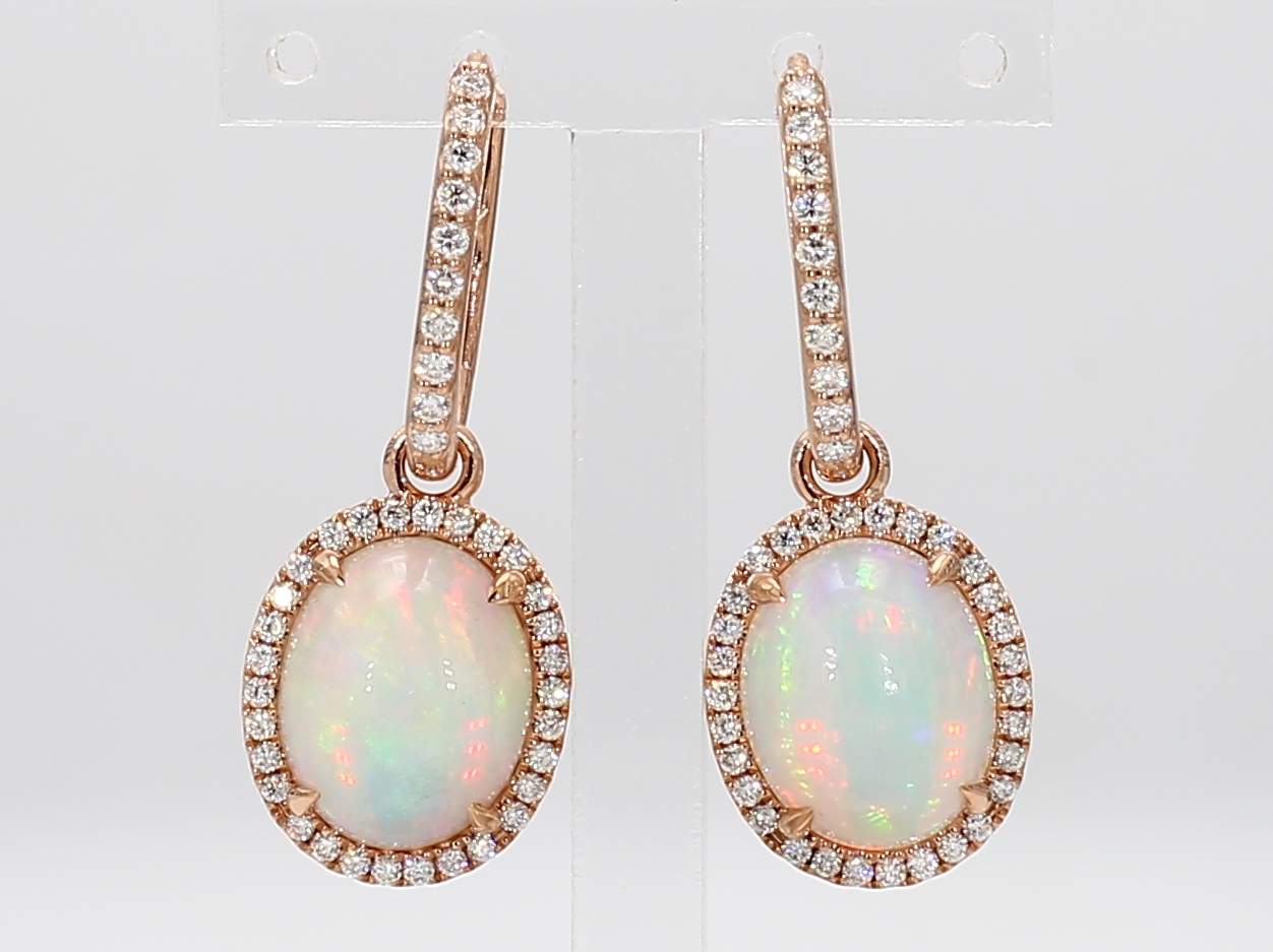 OVAL OPAL & ROUND DIAMOND 14KR EARRING