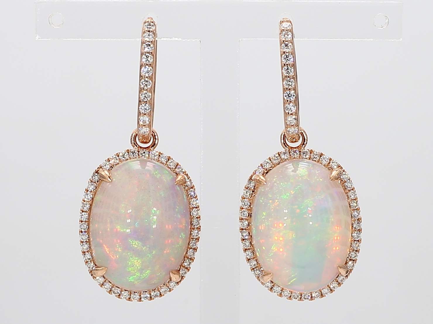 OVAL OPAL & ROUND DIAMOND 14KR EARRING