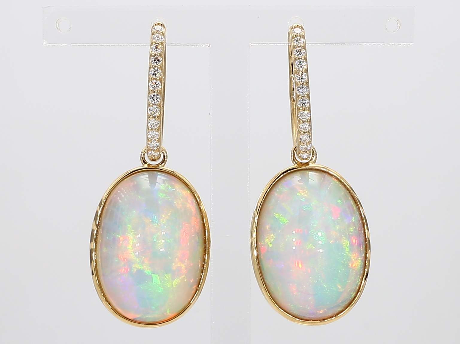 OVAL OPAL & ROUND DIAMOND 14KY EARRING