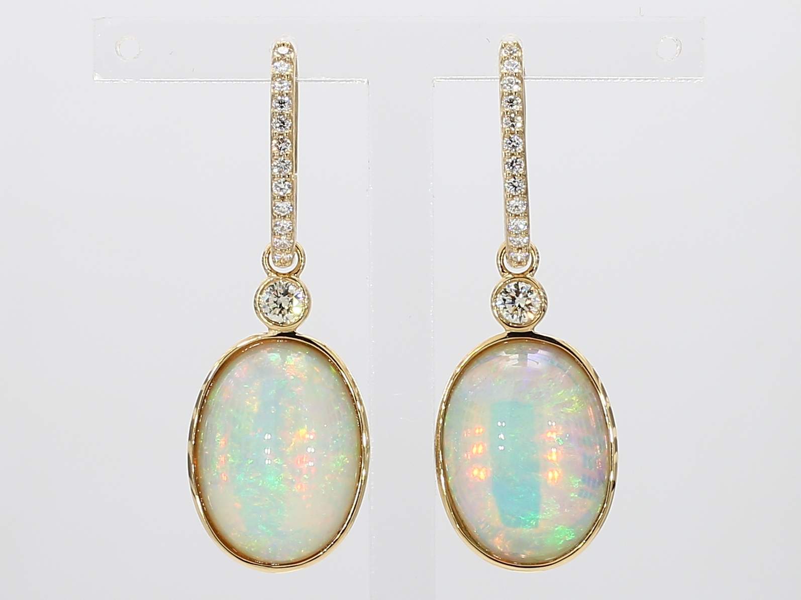 OVAL OPAL & ROUND DIAMOND 14KY EARRING