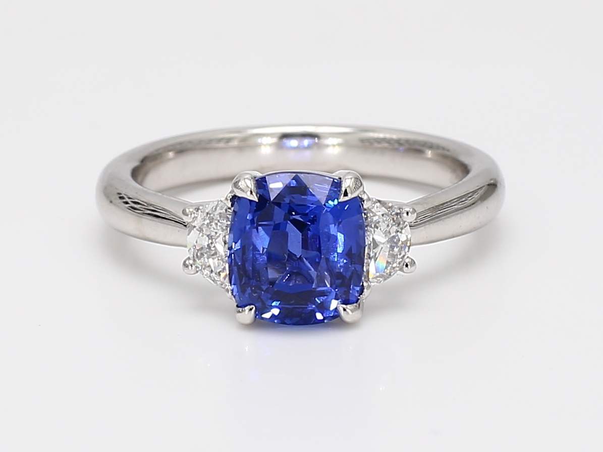 CUSHION SAPPHIRE & HALF MOON DIAMOND PLATINUM RING