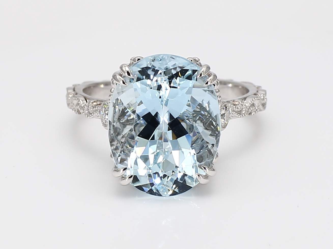 OVAL AQUAMARINE & ROUND DIAMOND 14KW RING