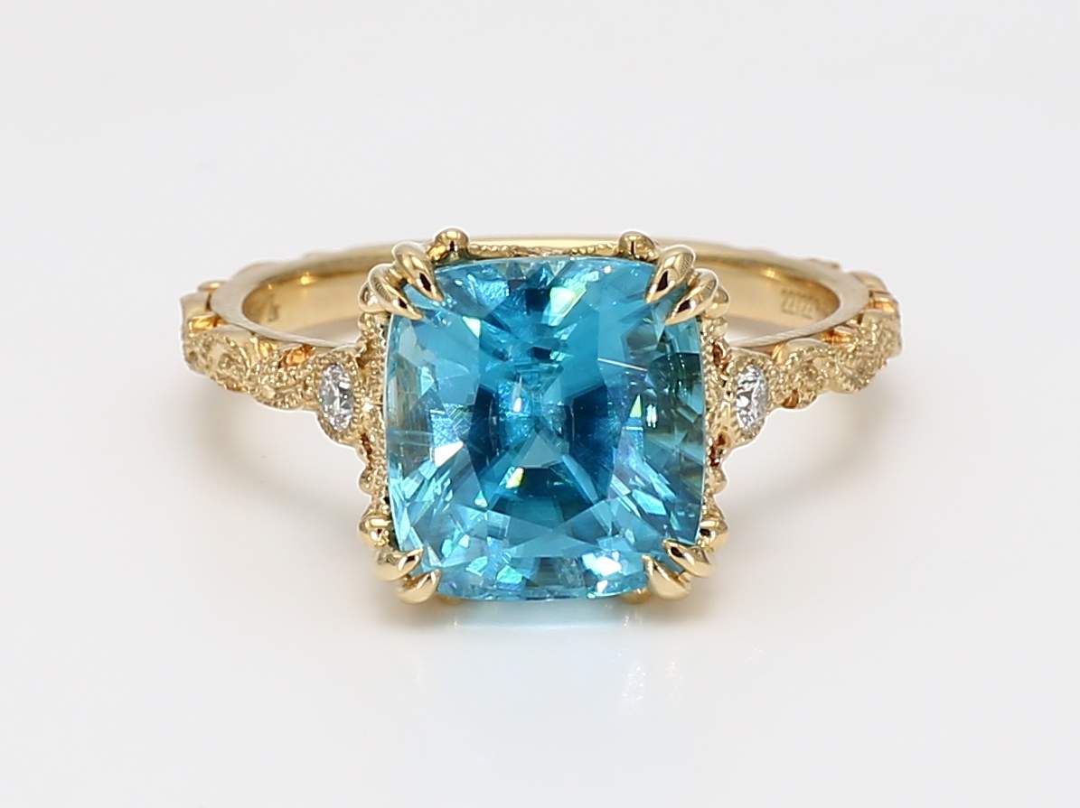 CUSHION ZIRCON & ROUND DIAMOND 14KY RING