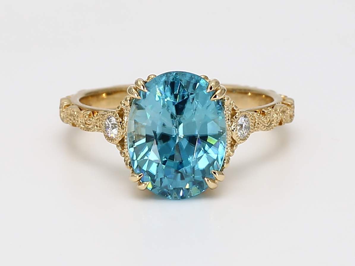 OVAL ZIRCON & ROUND DIAMOND 14KY RING