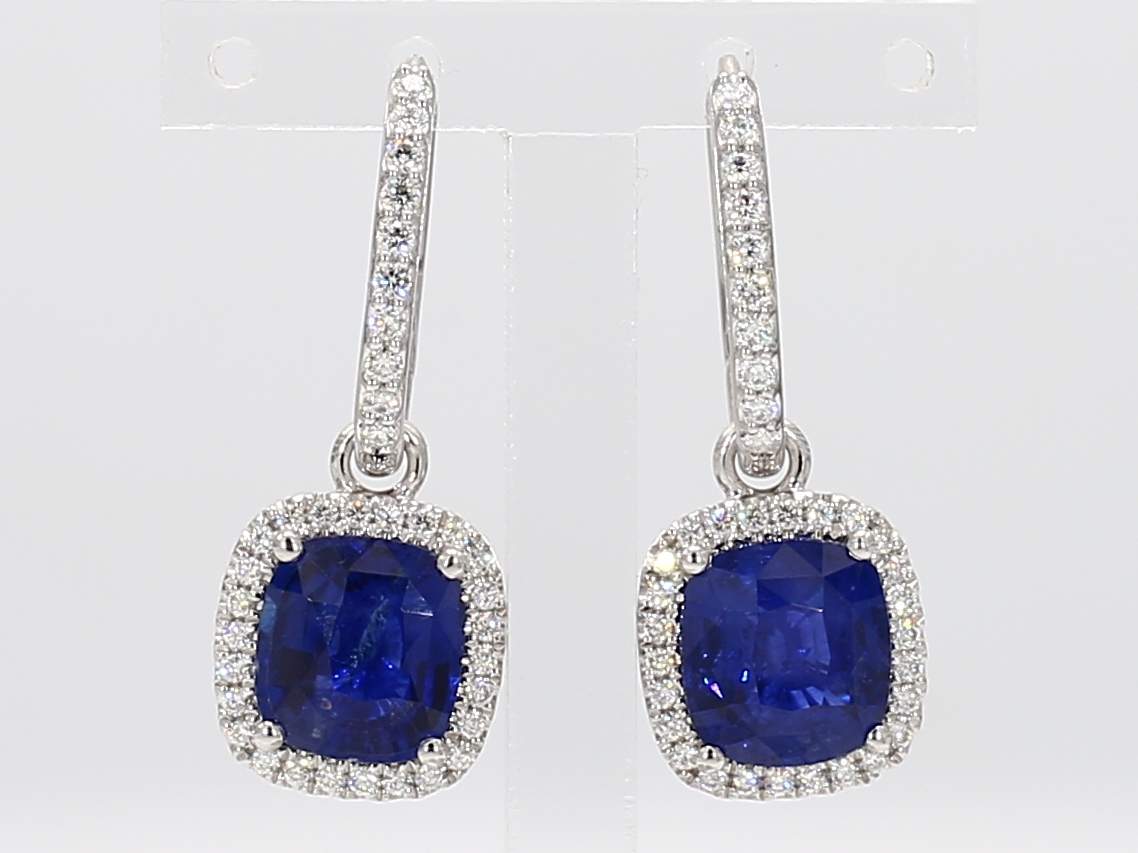 CUSHION SAPPHIRE & ROUND DIAMOND 14KW EARRING