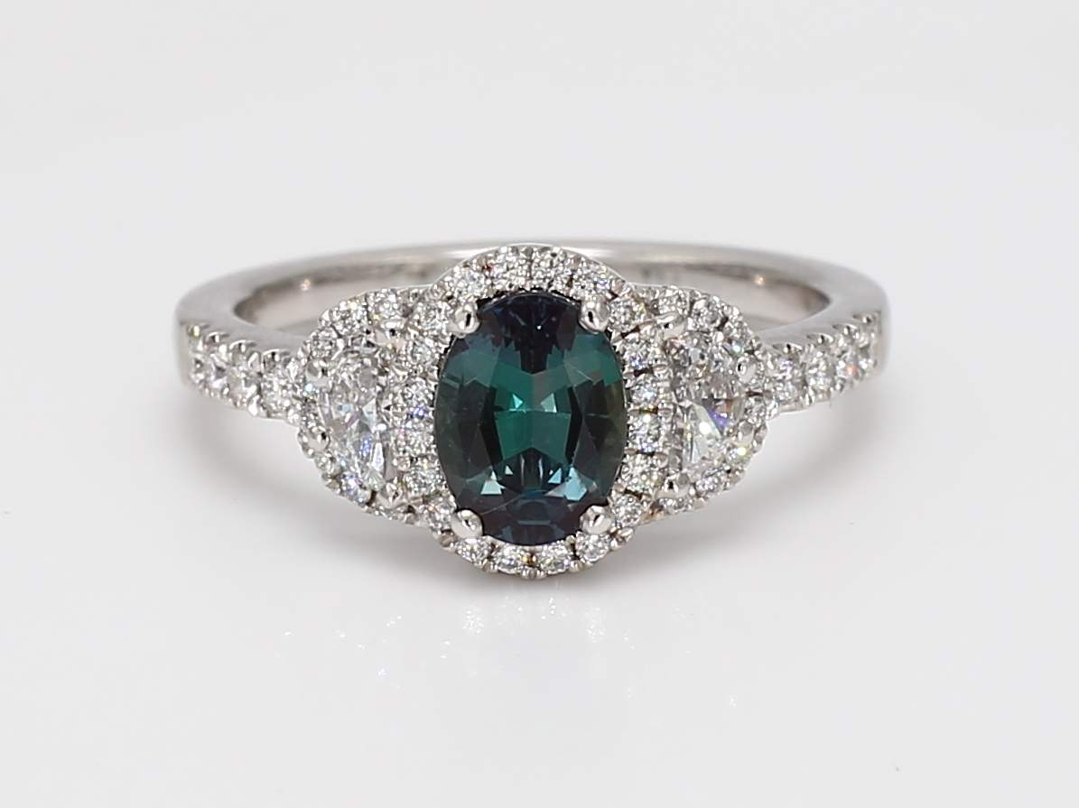 OVAL BRAZILIAN ALEXANDRITE AGL 1140699 & HALF MOON & ROUND DIAMOND PLATINUM RING