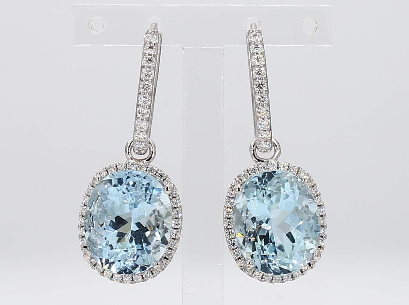OVAL AQUAMARINE & ROUND DIAMOND 14KW EARRING