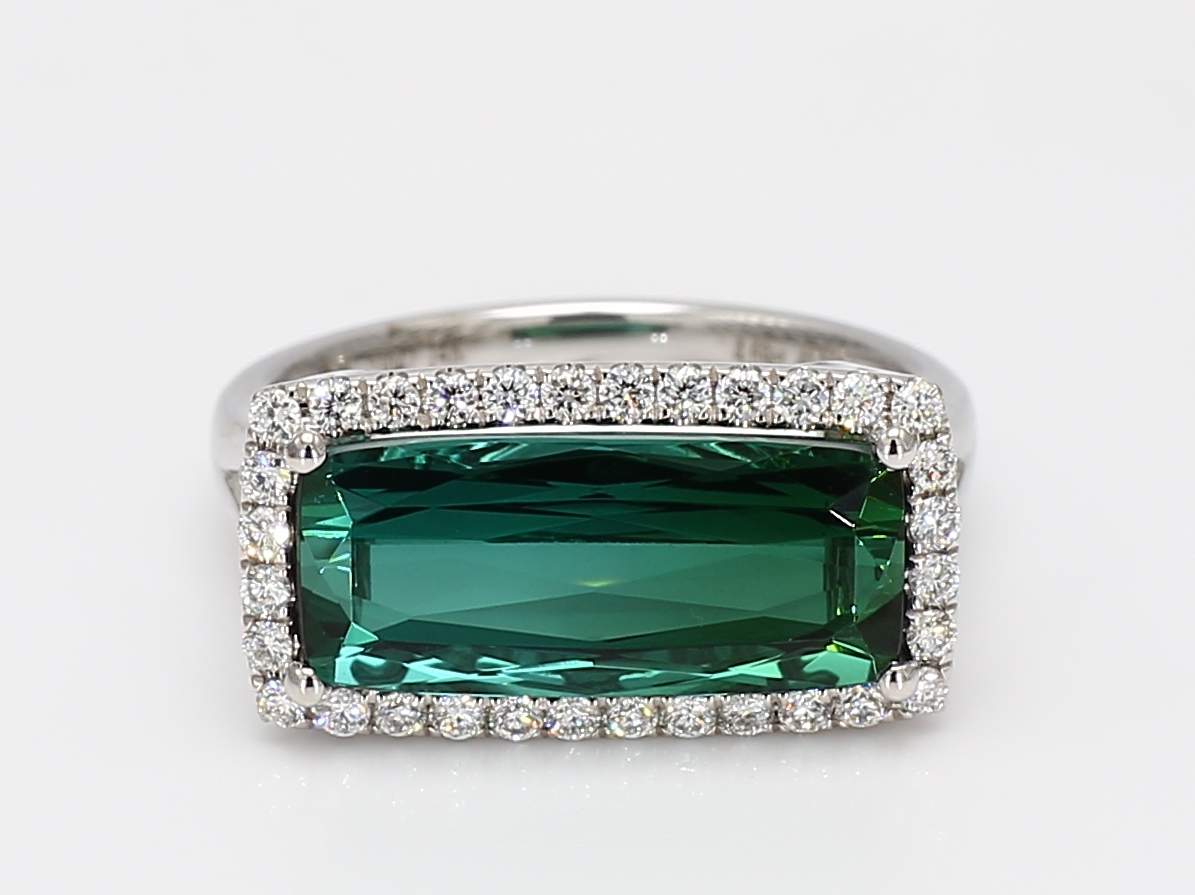 CUSHION BI-COLOR TOURMALINE & ROUND DIAMOND 14KW RING