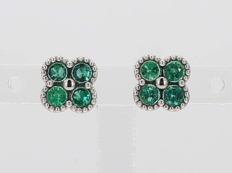 ROUND EMERALD 14KW EARRING