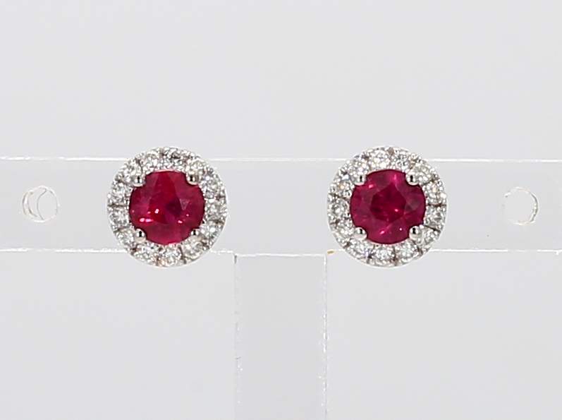 ROUND RUBY & ROUND DIAMOND 14KW EARRING