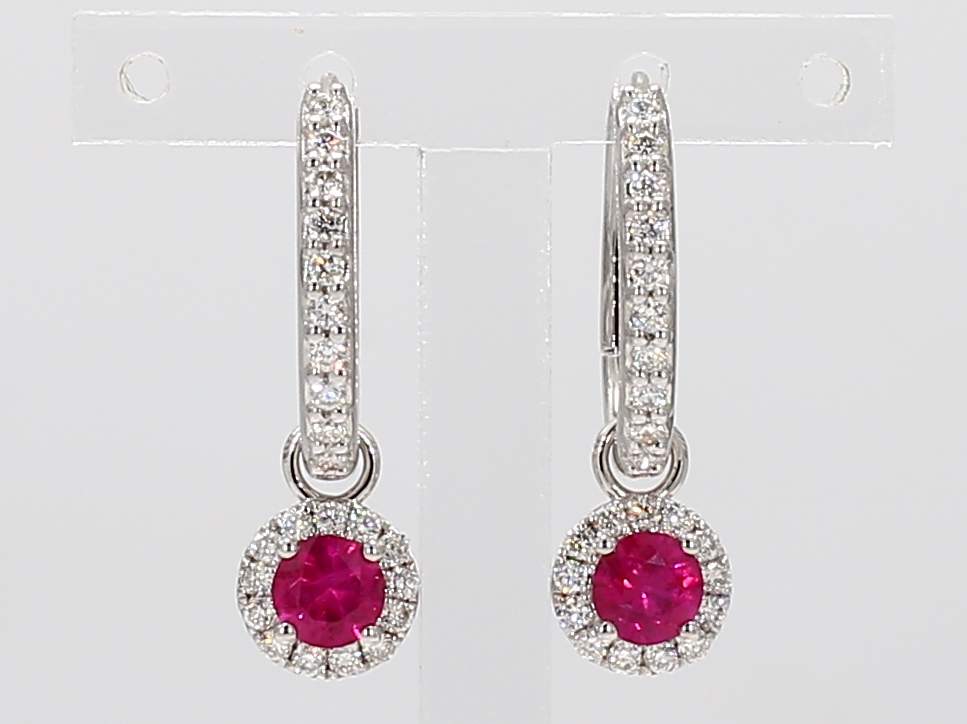 ROUND RUBY & ROUND DIAMOND 14KW EARRING