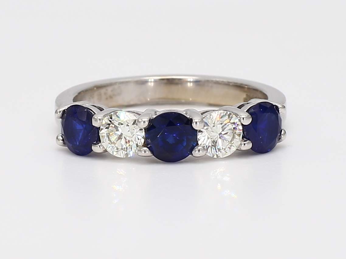 ROUND SAPPHIRE & ROUND DIAMOND 18KW BAND