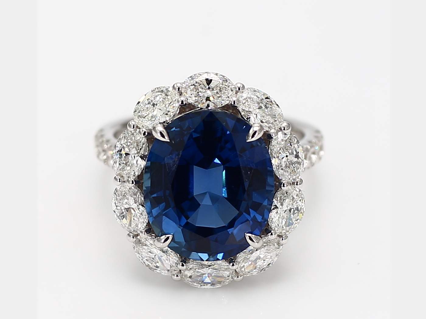 OVAL UNHEATED SAPPHIRE CDC 2308488 & OVAL & ROUND DIAMOND 18KW RING