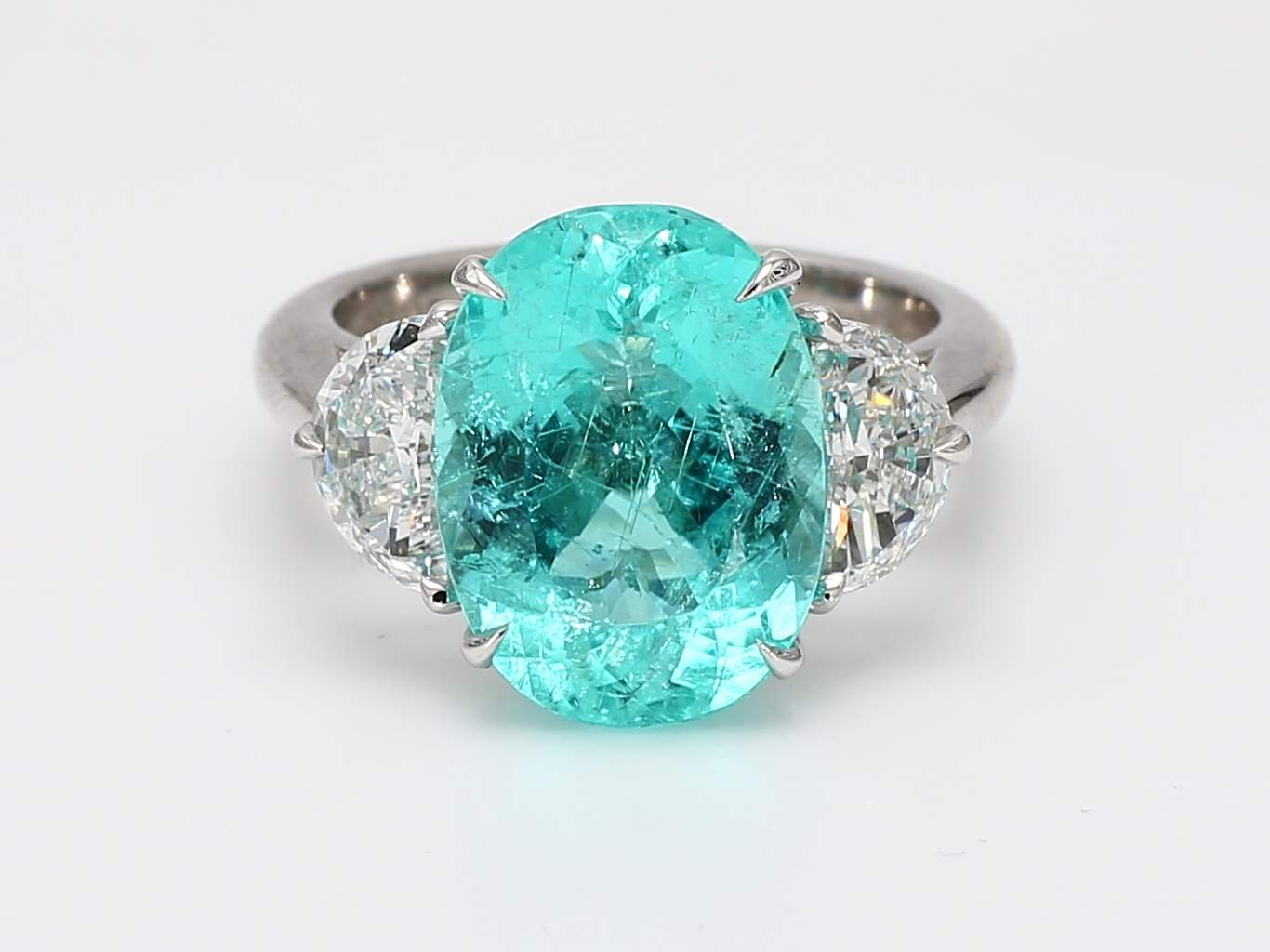 OVAL PARAIBA TOURMALINE GIA 5232594182 & HALF MOON DIAMOND D VVS1 GIA 1478062284 & D VS1 GIA 7486913198 PLATINUM RING